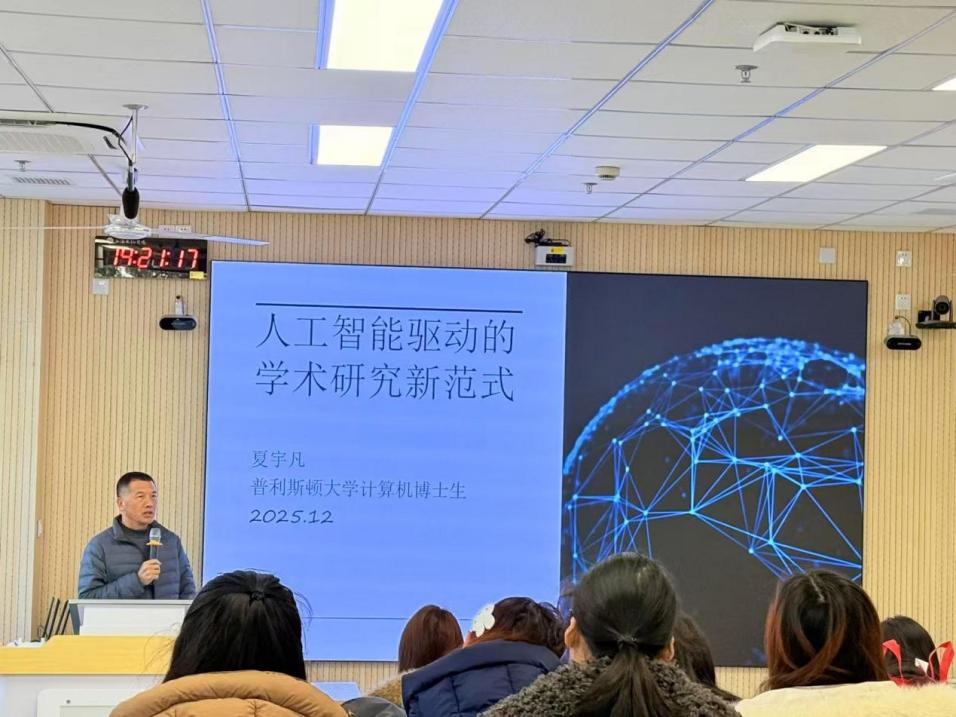 2025年12月26日,一场主题为“人工智能驱动的学术研究新范式”的学术交流活动在上海电机学院闵行校区二教成功举行。本次活动由普林斯顿大学在读人工智能博士夏宇凡主讲,聚焦学术研究与人工智能的融合应用,围绕论文写作的核心方法与规范展开系统讲解,并结合具体案例演示AI在选题构思、文献梳理与写作辅助中的实操路径,同时分享个人申请世界名校的经验与策略,为同学们提供了一套可直接落地的科研工作流程。