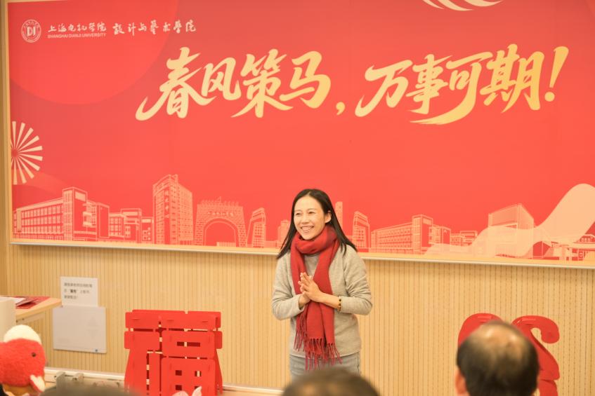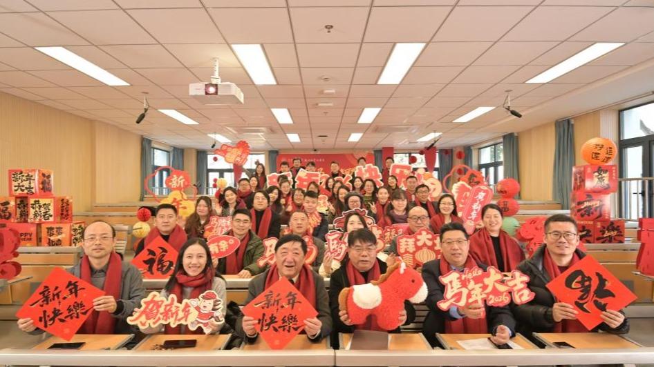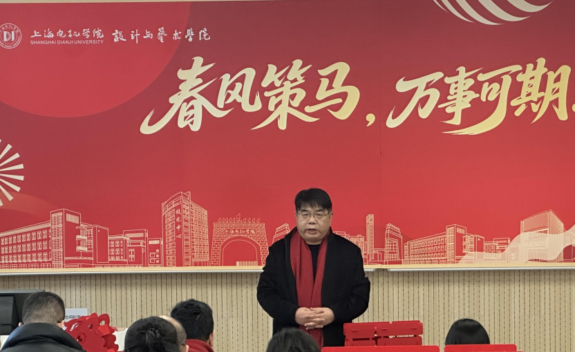 岁序更替,华章日新。2026年1月16日下午1:00,冬日的暖阳洒满上海电机学院闵行校区,第一教学楼114教室内早已是一片欢声笑语的海洋。设计与艺术学院全体教师聚首于此,共同录制马年新春祝福视频。镜头前,老师们精神抖擞,手持“马年大吉”“万事胜意”等红红火火的祝福道具,将对新年的美好期许化作灿烂的笑容与洪亮的祝福。这份发自内心的喜悦,不仅是向全校师生及社会各界送出的新春贺礼,更为全院大会奠定了温馨、团结且昂扬的基调。